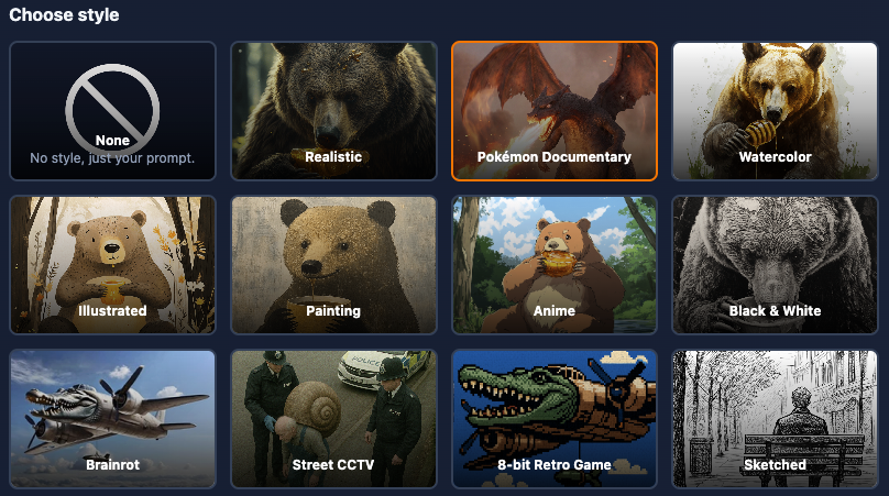 Use the Text to Image tool on Motionize.AI and choose the Pokémon Documentary Style
